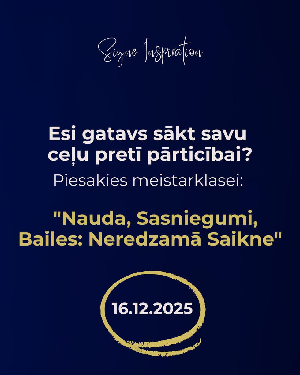 Zoom Meistarklase "Nauda, Sasniegumi, Bailes: Neredzamā Saikne"